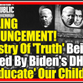 The Biden Administration has taken one giant leap forward in going FULL ORWELL. This time with a Ministry Of Truth. The DHS has now officially announced their plans to re-educate and propagandize our children K-12…but that is just where the story begins; and yes, it’s REAL!