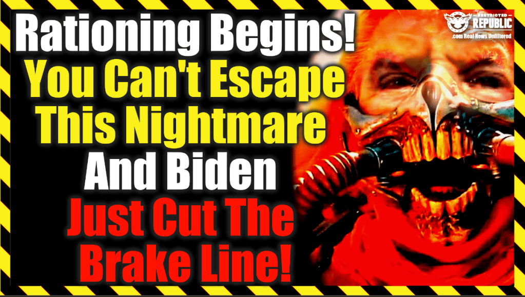 Rationing Begins! You Can’t Escape The Nightmare That’s Upon Us – And Biden Cut America’s Only Brake Line! Here how events have transpired to lead us into what many believe will be the worst food crisis in modern history. It is already happening around the world, rationing has begun. Why are we here? I will explain exactly what the ‘elite’ have done to assure the brake line was cut sometime ago; to assure we had no chance of stopping before we rammed head on with this disaster.