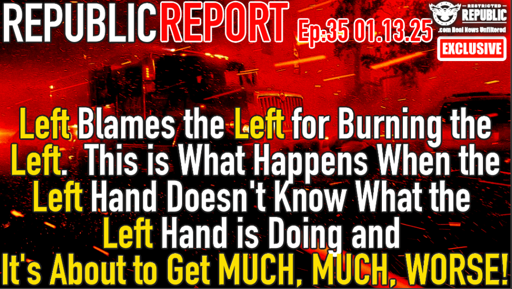 Title: EXCLUSIVE: REPUBLIC REPORT Ep.35 Cali Wildfire – The Left Blames the Left for Burning the Left. This is What Happens When the Left Hand Doesn’t Know What the Left is Doing and It’s About to Get MUCH, MUCH, WORSE!